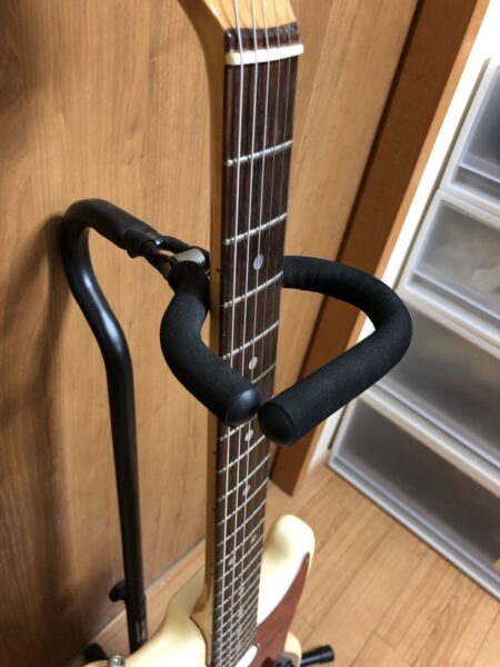 あとはジャズマスターやジャズベースのようにボディエンドが斜めのギターには向かず、ストラトやレスポールは安定して置けます。