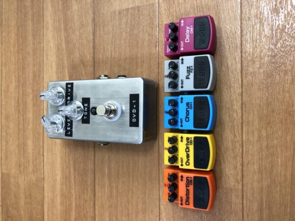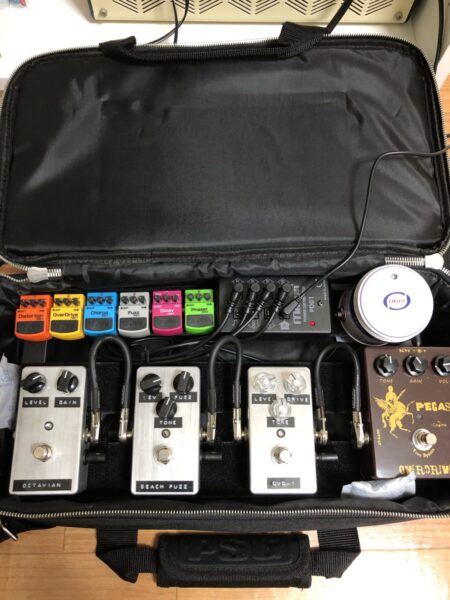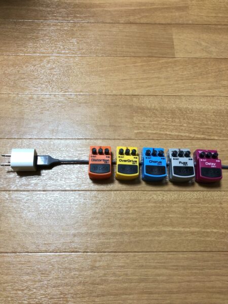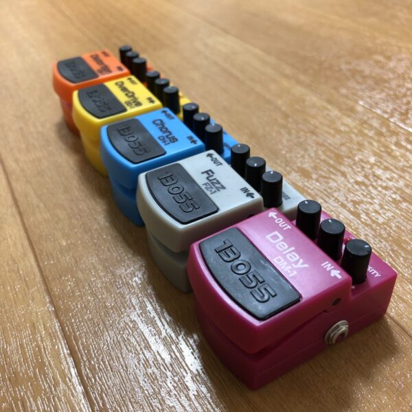 6色揃ったことだし、エフェクターボードに組み込んでみた。固定はしていない。空きがあるうちはここに置いておこうと思う。子供のようで可愛らしい。