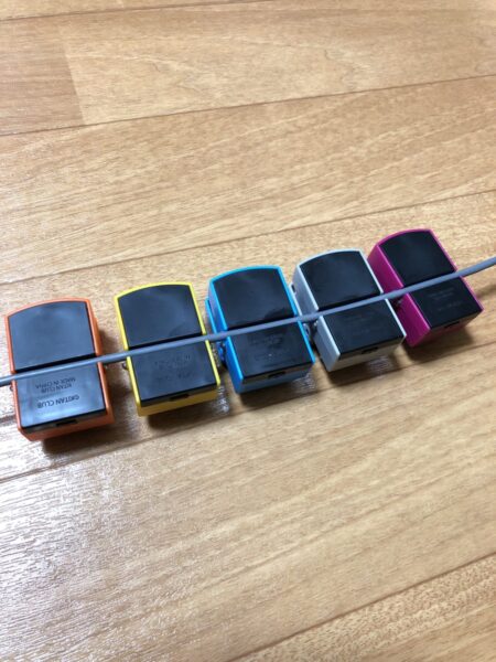 モノとしては「ケーブルマスコット」なので、スマートフォンの充電ケーブルなどに取り付けることができる。3mm径に適合するようだ。噛み合わせているだけなので、ケーブルを保護するような機能は無い。単なる飾り、オモチャ、ミニチュアである。