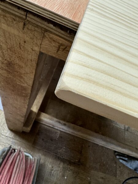 今回は価格、強度のバランスから、18mmのラジアータパインを選びました。レッドパインとは産地が異なります。同価格帯ではゴムの木のほうが硬いですし、もう少し厚い材が良かったのですが、お店に無かったので仕方がありません。しかし元のパーティクルボードよりは厚いので、特に問題はないと考えます。