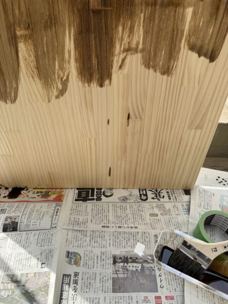 表面仕上げはワトコオイルを使います。色はダークウォルナット。私の工程は以下の通り。