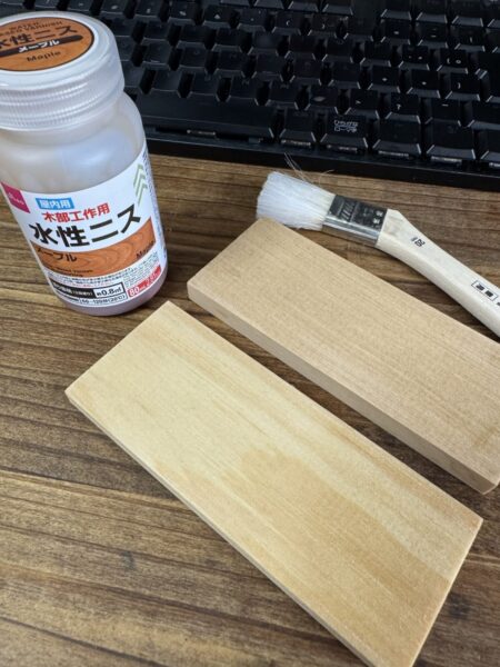 今回は木目を生かして、水性ニス仕上げを試してみます。