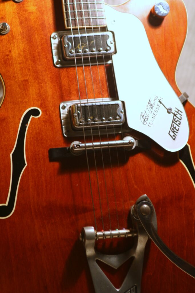 ピックガードはシルバー地にグレッチロゴ、チェットのシグネイチャー、TENNESSEANの機種名と、全てが記載されるようになりました。