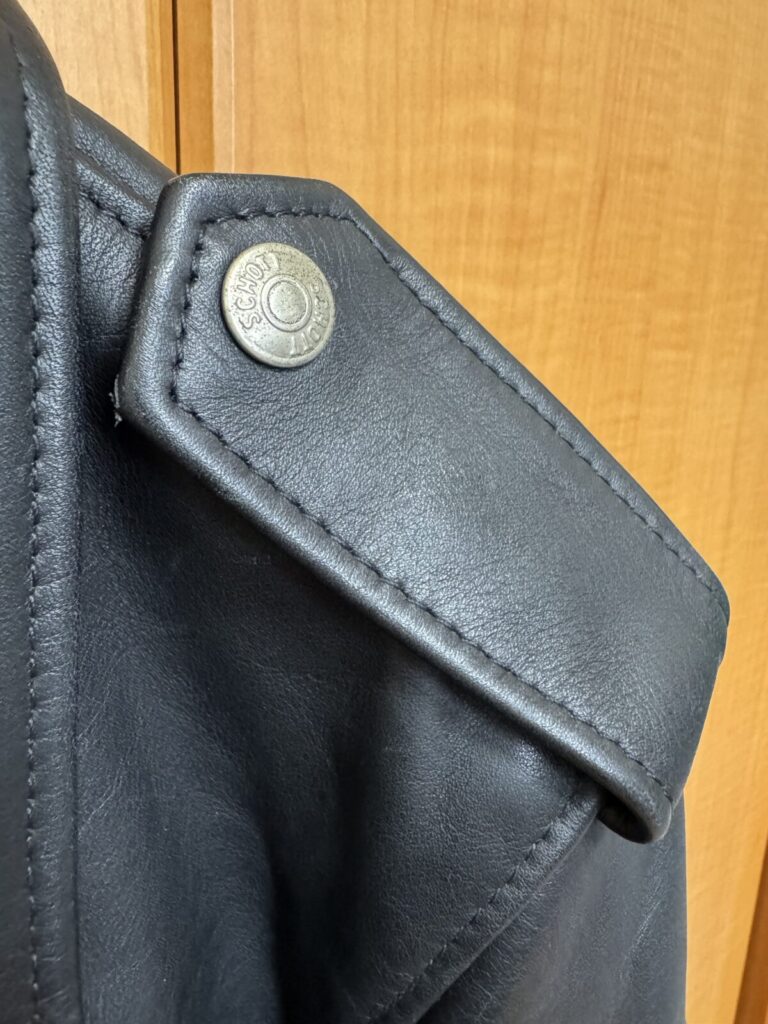 Schottのような革ジャンは、パイピングとかの端っこの部分が擦れて色褪せてきますね。それも経年変化の一つでしょうし、味として許容するのもアリだと思います。 しかし茶芯でもないレザーが白っぽくなってしまっているのは、私はそんなに好きじゃありませ... -
